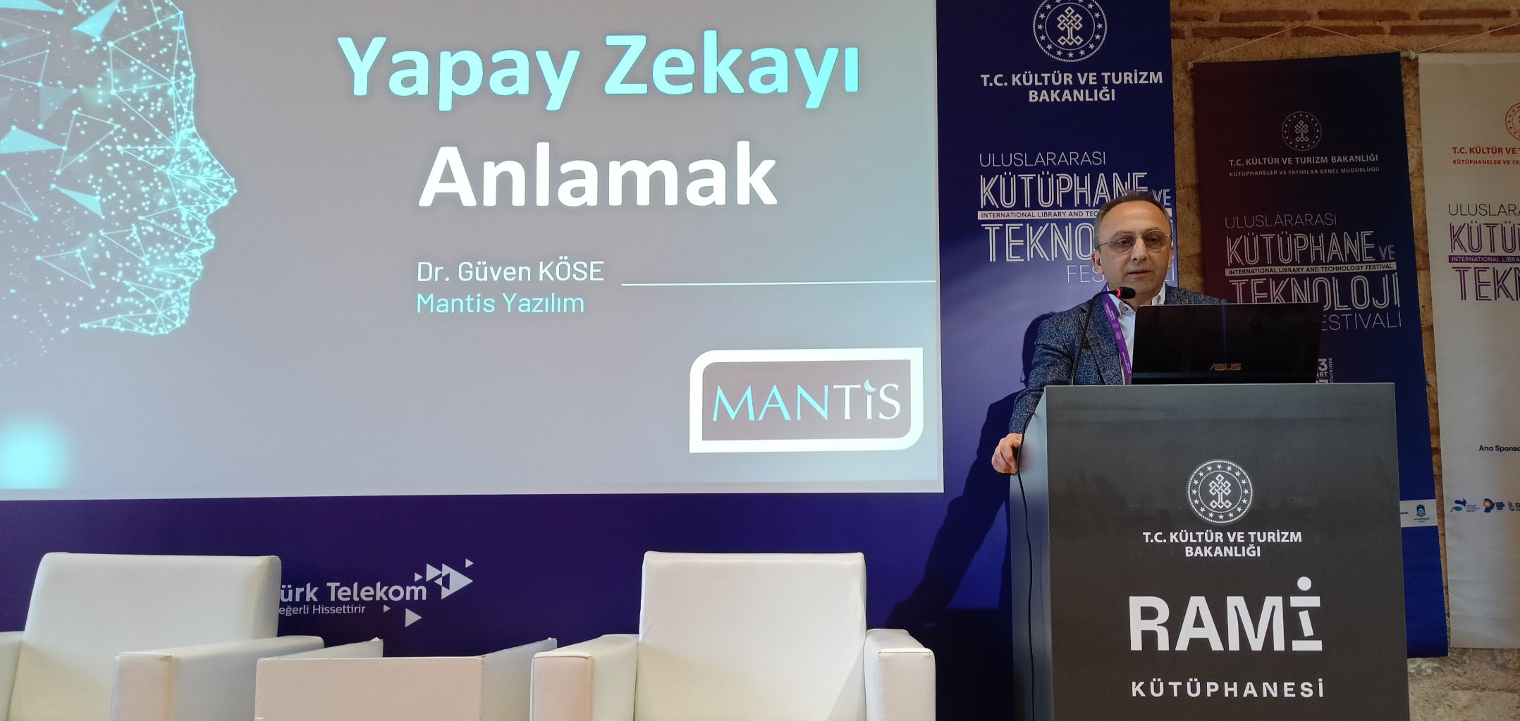 T.C. Kültür ve Turizm Bakanlığı tarafından 23-27 Mart 2024 tarihlerinde Rami Kütüphanesinde gerçekleşen Kütüphane ve Teknoloji Festivali kapsamında Mantis Yazılım Genel Müdürü Sayın Dr.Güven Köse, davetli konuşmacı olarak “Yapay Zekayı Anlamak” adlı bir sunum gerçekleştirdi.Devamını oku